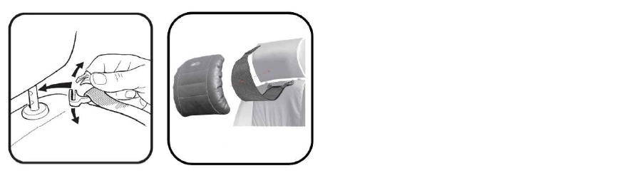 Alle benötigten Teile sind im Lieferumfang enthalten. Die Enden der mitgelieferten Ezyklik-Kunstoff Clips werden zum Öffnen einfach entgegengesetzt auseinander gedrückt und um je eine Stange der Kopfstütze geführt. Zum Verschließen des Clips den Vorgang umkehren. Die Halterung wird dann um die Kopfstütze gelegt und mit dem Klettband unter geringer Spannung fixiert. Das Nackenkissen wird nun an die Halterung geklettet. Eine kinderleichte und schnelle Montage.