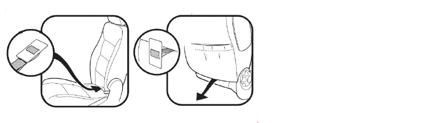 Für Integralsitze ohne separate Kopfstütze werden die Befestigungsbänder des Rückenteils mittels eines zusätzlich beigelegten Klettbands auf der Rückseite des Integralsitzes zusammengeführt.